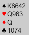N/S har en bra utgang i 4 spar. Slik det sitter går det ganske greit å få minst ti stikk, og det er elleve mulige stikk i sparkontrakt.
