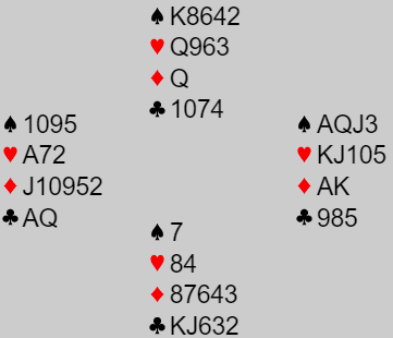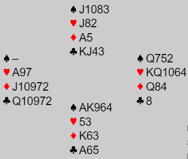Og ja, N/S var utmeldt. Å si at syd burde meldt er nok lettere med fasit i hånd, og det blir bare dumt å hevde at nord kunne gjort noe som helst.