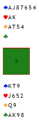 Ved noen bord gikk syd innpå med 1 ruter med litt for tynne kort for innmelding i sonen. Det gikk ikke bra. Vest passet, og øst kom tilbake med en opplysende dobling. Vest passet fornøyd, og 1 ruter doblet ble kontrakten. Det kostet hele 1100, men syd kunne jo etter det blodbadet prøve seg med «men de har jo slem i kortene». Det er ofte en halvdårlig unnskyldning i slike tilfeller, men her er det for så vidt riktig, forutsatt at lagkameratene har et maksresultat. Det hadde de ikke da det var paret som sprengte kortene litt og gikk bet i 7 kløver. Så i den kampen kom det største utslaget i dette spillet, -1100 og -100, -15 IMP.