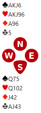 Se på stakkars nord, han har 17HP og makkeren har åpnet, og så er det ingen mulighet til å bete motpartens 4 spar!