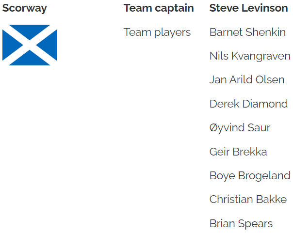 Det skotsk-norske laget SCORWAY vant finalen i WBT Champions 1 (World Bridge Tour). På vinnerlaget står alle disse oppført (det er tillatt med mer enn seks spillere som rullerer på å spille i lagturneringer online):