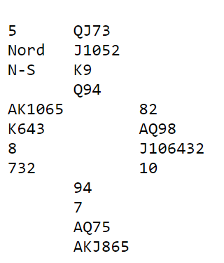 Vest vet at nord har hjerterfarge. Den 3 rutermeldingen tyder vel kanskje på at det er femkorts hjerter hos nord også, eller kanskje nord bare ønsker å sjekke om det er god nok stopper i ruter?