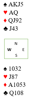 Vest spiller ut hjerter dame mot 3NT. Øst følger med hjerter 5. Ser du en god plan for å vinne 9 stikk?
