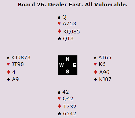 Like etter meldte og vant begge lag en fin slem i ruter, uavgjort spill igjen.