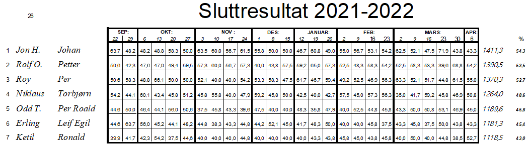 Komplett resultatliste og spillestensiler finner dere på hjemmsidene til NBF.