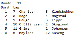 Sammenlagt etter 3 av 4 spillekvelder leder paret Pedersen-Nyseth foran parene Olsen-Olsen og Olsen-Berg.