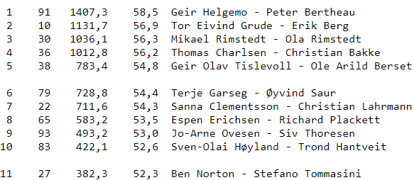 7.Thor Kjennbakken- Torfinn Wilhelmsen +25