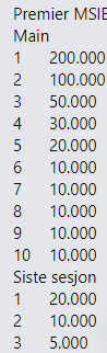 I tillegg til hovedpremiene var det en rekke ekstra premier i forskjellige kategorier. Her listen over premiepenger:
