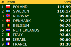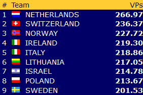Dessverre har ikke Norge sitt mix-lag fått det til.og sliter langt nede på listen, de er nå nr. 19 av 22 nasjoner.