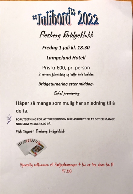 Velkommen til Julibord 1. juli - se invitasjon under: