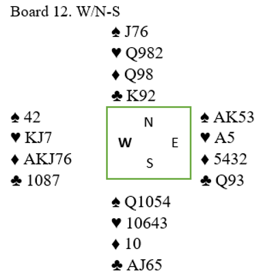 Vest sin gjenmelding 1NT viste 12-14 balanserte.