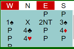 Her er det drømmetilpasning, og selv om N/S har kun 21 HP til sammen og bare en 4-4 tilpasning i hjerter er 4 hjerter en god utgang. Om det sitter surt kan den gå bet, men det er veldig bra sjanser.