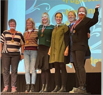 Flott seier og plass i neste sesongs 1.divisjon for de norske damelandslagsspillerne. Fra vensre: Heskje, Fuglestad, Harding, Nyheim Øigarden, grude og Vist.