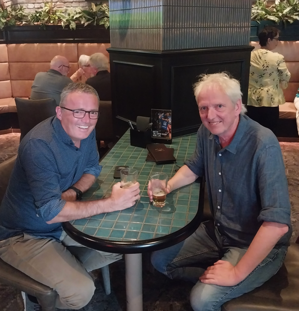 Etter at undertegnede flyttet til Auckland, New Zealand i 2008 har det med jevne mellomrom vært noen besøk fra gamlelandet, både familie og bridgevenner. Nå har det en stund vært lite av det pga. pandemien. Denne uken dukket imidlertid Espen Kvam opp. Han var på jobbreise i Australia og New Zealand, og selv om det var travle dager for han ble det tid til å hilse på NBF sin mann "Down Under". Vi møttes i Aucklands Aker Brygge, Waterfront/The Viaduct.