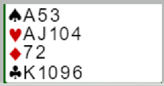 Den andre situasjonen du kan ta stilling til er at etter vests 1 hjerter går det pass fra nord og 3 hjerter (sperr) fra øst. Hva melder du da?