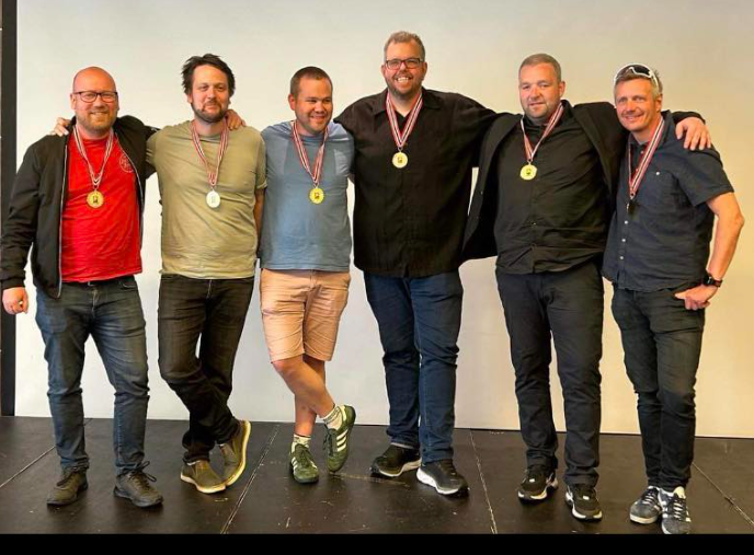Helt suverene vinnere av NM for klubblag 2023 (fra venstre): Åsmund Forfod, Steffen Fredrik Simonsen, Karl Morten Lunna, Jørn Arild Ringseth, Kåre Bogø og Christer Kristoffersen
