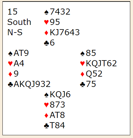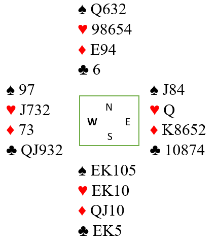 Normalt vil en slik 3NT gå bet med kun en hjerterstopper, for N/S godspiller hjerteren og spillefører har kun syv toppstikk i kløver og hjerter samt ruter ess. Han må innom motparten. Så med hjerter 5-3 kunne de ha sørget for å ha overgang til syd i den fargen, og om syd har spar ess er det håpløst, syd kommer inn til hjerterstikkene sine. Men her satt hjerteren 6-2, og syd hadde ikke noe hurtig inntak. Det er faktisk slik at om spillefører gjetter sparen (knektens plassering) så kan ikke 3NT rokkes!