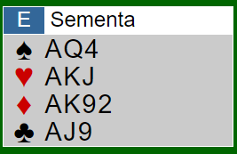 Sementa kunne vel like godt meldt 7NT, men det kunne kanskje vært en liten ekstra sjanse i trumfkontrakt om vest mot formodning satt med kun sekskorts trumf.