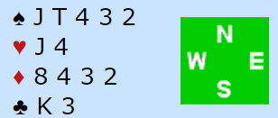 Turbo (kallenavn for Jon- Erik var selvsagt rutinert nok! Han spilte ru 7 til esset og så sp 4 til 8-er og esset! Hvorfor? Poenget er at jeg som åpner opplagt har hj H , minst en -2 honører i kløver og da kan jeg ikke bare ha småkort i spar. Sp A felte min single konge og jeg angret på min syltynne åpning med sp K- hj K952 -ru653- kl KD732 Resultat 12 stikk og delt topp på spillet.