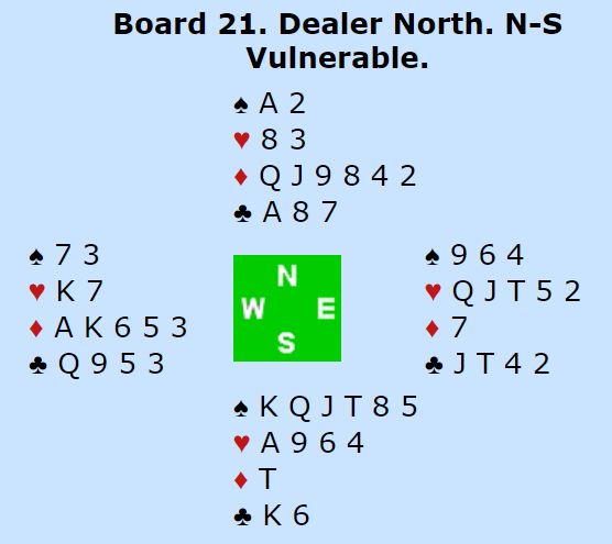 Vanlig kontrakt var 4 spar. Hvis spillefører får ordnet seg en hjerterstjeling hos nord – den korteste trumfhånden - blir det ett ekstra stikk og man får syv trumfstikk i alt. Sammen med hjerter ess og to toppstikk i kløver gir det utgang til notering.