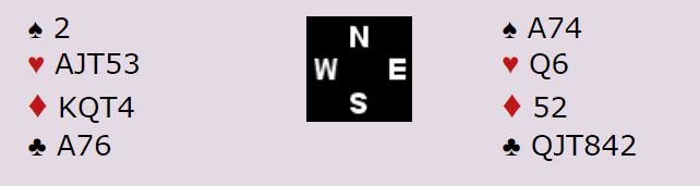 Hvordan ville du spilt? Sitter kløveren 4-3 hos oss får han to avkast og derfor er en mulig løsning å bruke dem til å sake to små rutere, men da gjenstår finesse i hjerter ,altså hos Per Even, som eneste mulighet.Hvis ikke Hj K sitter dobbel, noe som det er minimal sjanse for. Alternativ er å sjanse på at ru K sitter i Nord hos meg.