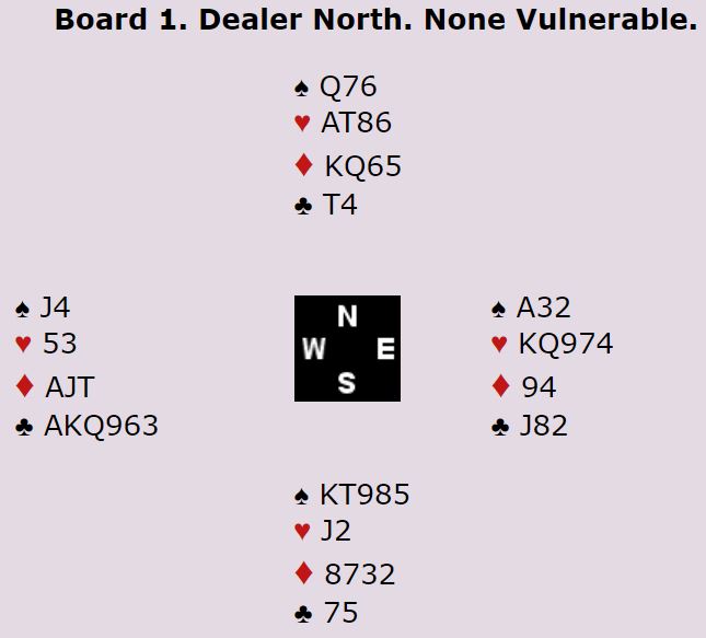 Vest burde kanskje ha meldt 5 spar med det samme i stedet for dobler? Men da vest doblet 4NT sa nord redobler, og syd viste ruterfargen pluss at han og derfor må ha hjerterfarge. Vest var så med og sa 5 spar, og nord tok sjansen på 6 ruter som øst doblet, såkalt Lighnerdobling. Det ber om unaturlig utspill, dvs. et annet utspill enn spar som øst hadde meldt. Og vest fant hjerterutspillet til stjeling før de også fikk for kløver ess, dvs. en doblet bet, USA 1 + 200. Ved det andre bordet stampet Italia i 6 spar over 6 ruter og gikk to doblede bet så USA 1 noterte +300 som N/S ved det bordet. Amerikanerne vant spillet med 11 IMP. Kampen endte med en liten seier til USA 1.