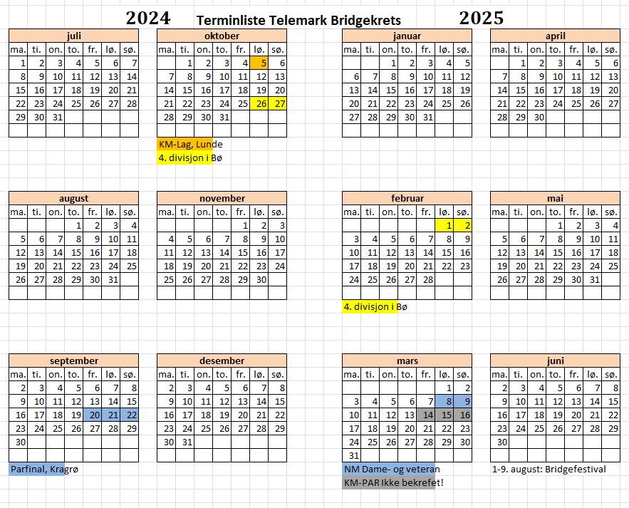 Her er nedlastbar PDF versjon. Vi forbeholder oss om noen endringer.
