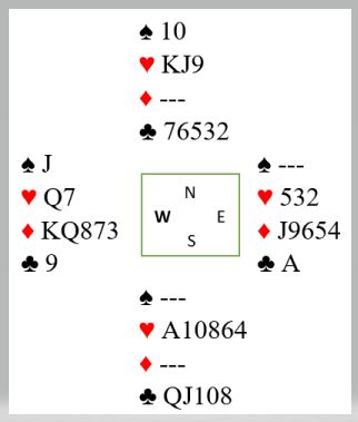 Begge på syds plass, Kwiecien og Rimstedt havnet i 6 kløver etter at vest hadde meldt inn ruter, og øst hoppstøttet ruteren. Det kom ruter ess i utspill fra vest som syd stjal. Hva nå?