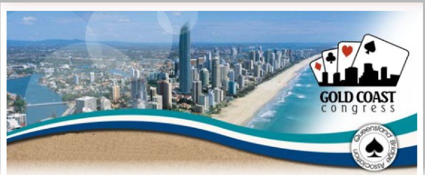 Undertegnede befinner seg i øyeblikket i Broadbeach, Gold Coast, Australia hvor det skal spilles face-to-face bridge i en hel uke i sommer (!)varmen. For sekstiandre gang arrangeres Gold Coast Congress fra nå i helgen til neste helg, og det er som vanlig bra med spillere tilstede fra forskjellige kanter av verden. Neste år håper vi på at noen nordmenn tar seg en skikkelig ferie Down Under og også deltar i denne bridgekongressen.