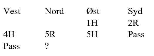 Noen ville kanskje vurdert 2NT med syds kort over østs åpning 1 hjerter. Allan Livgård likte ikke det så godt med en slags mellomhånd, ikke sterk, ikke svak fordelingshånd som er de to håndtypene som passer best for en sånn 2NT - begge minor. Så han sa altså 2 ruter, og før røyken hadde lagt seg var han i 6 ruter doblet.