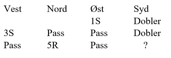 Terje Aa meldte 6 ruter. Øst doblet og det gikk pass rundt. Slik så hele spillet ut: