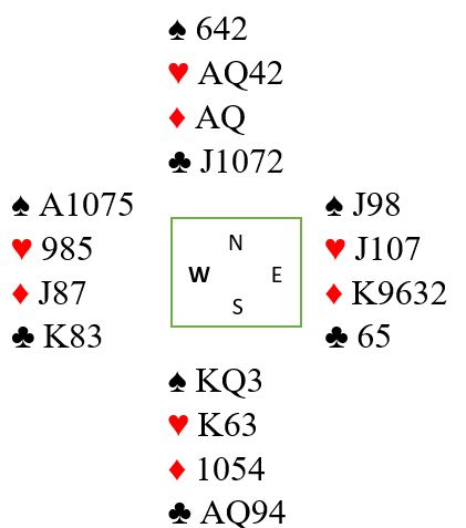Ja, men la oss først si du spiller deg over på hjerter dame og drar kløver knekt som får seile, en start på spillet som skjedde flere steder da spillet forekom i en turnering. Hvis finessen lykkes er alt vel og bra, men vest stikker med kløver konge og skifter til en liten ruter.