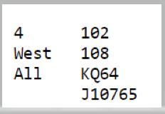 Bakke stakk og stjal en ruter. Så hjerter ess og hjerter til stjeling fulgt av nok en ruterstjeling. Så A-K i kløver og kløver til stjeling, begge fulgte tre ganger kløver. Den siste ruteren ble stjålet, og nå var det ikke noe problem lenger siden hele spillet så slik ut: