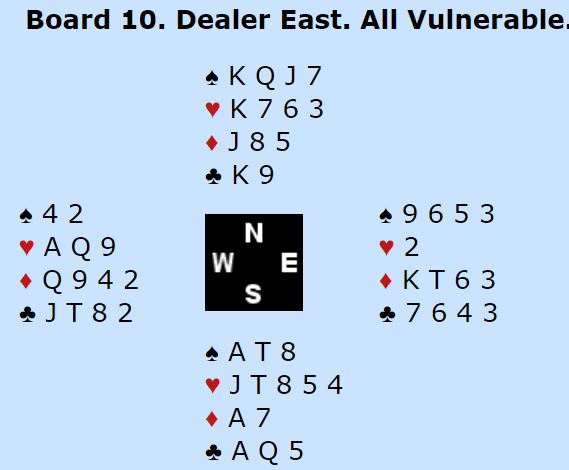 Dette er et spill som ville fort blitt glemt i lagkamp, alle vinner sin utgang N/S. Sånn er det ikke i parturnering!