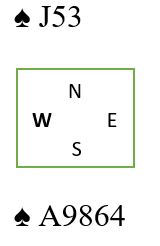 Løsningen her vil være å spille nieren å la den seile. Øst må bruke en honnør for eksempel damen, så neste gang spilles knekten som tar med seg kongen (hvis øst dekker), esset og tieren faller. Åtteren står og tar ut østs tredje lille spar. Dette er en såkalt intrafinesse.