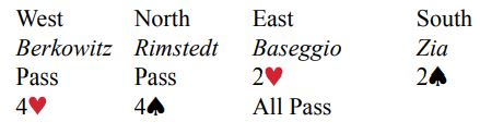 Dana Berkowitz (vest) spilte ut trumf mot syds 4 spar. Spillefører (Zia) slapp utspillet til østs konge, og fortsettelsen derfra var spar 8. Zia vant med spar 10 og spilte kløver til kongen og esset. Hva nå?