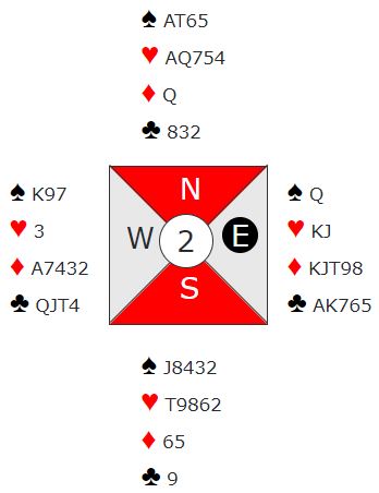 En bra start kan være omvendt minorhøying etter østs åpning med 1 ruter, så det starter 1R - 2R hvor svaret er krav. Da kan Ø/V ganske kontrollert finne ut om det er slem i kortene, i alle fall om ikke nord melder seg på og forstyrrer. Feilen med dette er at Ø/V fort havner i 5 ruter som ikke alltid er gull i parturnering hvor 3NT ofte gir bedre score. For all del, 5 ruter er en glimrende utgang, og 3NT er i teorien ikke helt sikker om det sitter annerledes (hjerterhonnører bak østs hjerter). I dette tilfellet er imidlertid 3NT supert slik det sitter, N/S kan ikke få for mer enn de to majoressene.