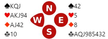 Men der Charlsen fikk ruter dame i utspill til esset ble det annerledes. De har ingen stikk så langt. Det er to sjanser ved å spille kløver ess. Enten kan kongen falle, eller om den ikke gjør det kan hjerterfinessen tas - en 50% sjanse. Hvis syd har hjerter dame får spillefører kvittet seg med to spar fra østs hånd, og da blir det tolv stikk selv om det blir en kløvertaper.