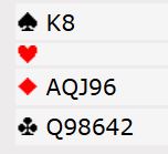Ved det andre bordet stoppet N/S i utgang, tolv stikk og +480 etter kløver konge i utspill. Så å gå seg bet i 6 spar kostet 11 IMP. Å ta de tolv stikkene som er der etter utspillet ville gitt 11 IMP inn i stedet, 22 IMP i sving. Så disse to spillene kostet 48 IMP, med andre ord fire ganger mer enn marginen Rosenthal tapte kampen med.