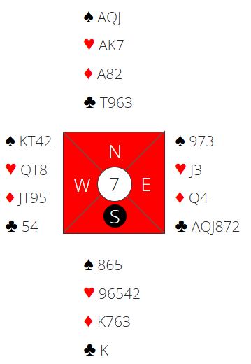 Her er et spill fra tirsdagens spilling hvor det var et pent og instruktivt poeng i spilleføringen. Det ga velfortjente poeng til dem som fikk det til.