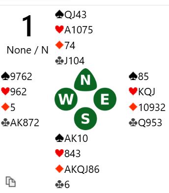 Mot 5 ruter spilte Heskje ut sin single kløver til esset fulgt av den minste kløveren (Lavinthal) tilbake til stjeling. Vest skiftet til hjerter. Spillefører kunne ikke unngå å tape ett stikk til spar konge senere. En bet altså, og sammen med +460 ved det andre bordet var det verd 11 IMP.