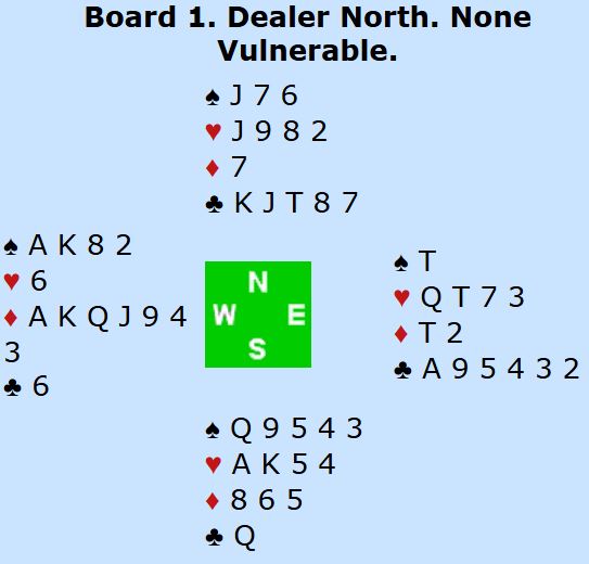 Åpningen 2 ruter sperret forsåvidt ut N/S som kan spille delkontrakt i ruter, og noen steder vant N/S 2 spar også. Det er uansett ikke lett for N/S å komme med i disse soneforholdene.