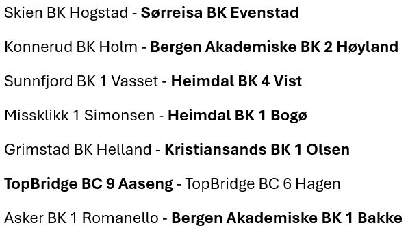 Skulle dette slå til vil det altså bli to lag fra HEIMDAL BK og to lag fra BERGEN AKADEMISKE i lagfinalen. Det kan imidlertid i teorien bli ingen lag fra to av de mestvinnende klubbene i Norge også!