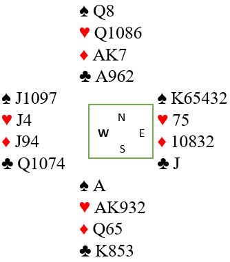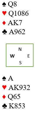 Det er også et scenario at vest passer. Da bør det enkelt ende i slem, enten ved at nord åpner, eller om nord passer får syd vist knallsterk hånd med 2 kløveråpning.