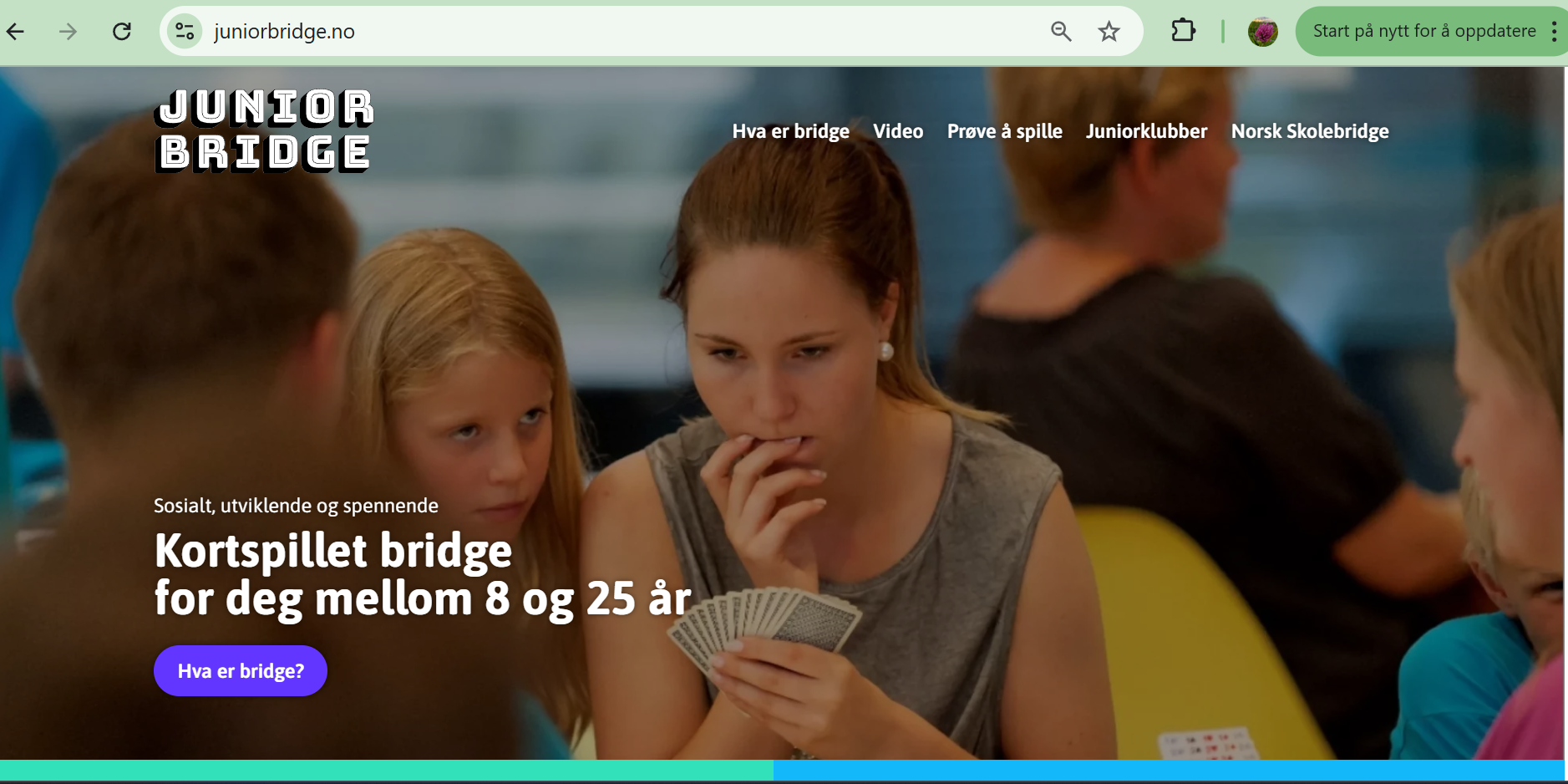 Visste du at Norsk Bridgeforbund har et eget nettsted for spillere under 26 år? Sjekk ut www.juniorbridge.no