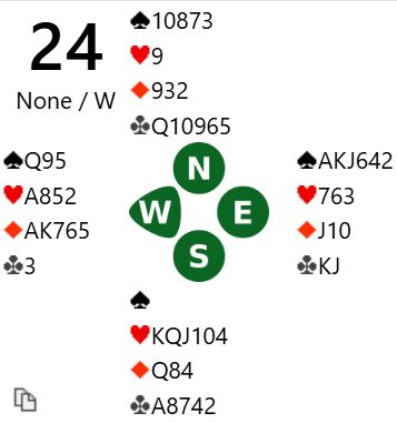 Bakke og Grude (N/S) var med til 4 kløver, men lot så Ø/V spille 4 spar som ble vunnet med ti stikk, Ø/V +420.