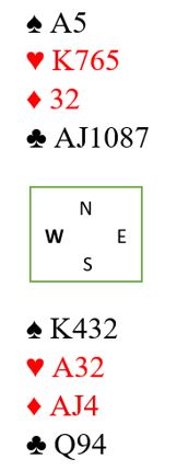 Øst åpner med 1 kløver, og vest viser hjerterfargen. Nå vil det antagelig komme en sparmelding fra nord. Øst bør reversere med rutermelding, og så spørs det hvordan det går videre. De fleste havner i 3NT med slikt, men hva med lilleslem i kløver?