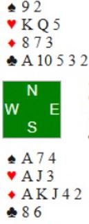 Syd valgte opp oppvurdere sin hånd til 18-19 NT pga. den gode ruterfargen. Da fikk vest meldt inn 1 spar over syds åpning 1 ruter, men syd ble etter hvert likevel spillefører i den normale utgangen 3NT.