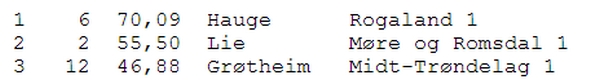 Rogaland (Hauge) har tatt en soleklar ledelse i årets 1.divisjon, 15 VP foran Møre & Romsdal. I bunnen er det tett, med seks lag på 2VP.