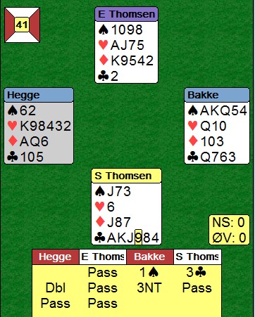 Det var en gysare av en kamp i semifinalen mot Danmark. Jeg fikk sett den siste sesjonen og det var mer enn nok for oss med frysete nerver. Bridgen fra de norske varierte fra det glimrende til det nesten komisk dårlige. I innledninga av turneringa har det virka det som om Harald Eide og Kristian B Ellingsen har bært båten, men i de siste spillene bør de takke sin lagkamerater, Christian Bakke og Kristoffer Hegge, for at de kom til finalen. Seier med 2 IMP!!